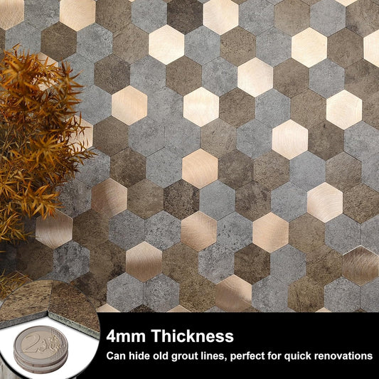 WoStick Metal Stick on Tiles, 4mm Thickness Self Adhesive Wall Tiles, Super Stronger Peel and Stick Backsplash Tiles with Metal Brushed 10sheets/Pack