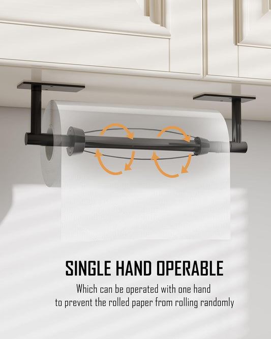 WZRUA Black Kitchen Roll Holder Under Cabinet, Self Adhesive Paper Towel Holder Wall Mounted, SUS304 Stainless Steel Kitchen Roll Holder with Damping under Cupboard(Square Base)