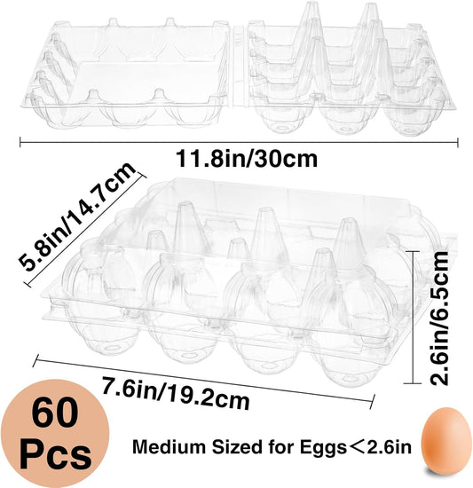 Youeon 60 Pack Plastic Egg Cartons 12 Count, Clear Egg Cartons for Chicken Eggs, Reusable Egg Cartons Bulk Perfect for Family, Farm, Markets, Display, Camping - Medium (3x4 Grids)