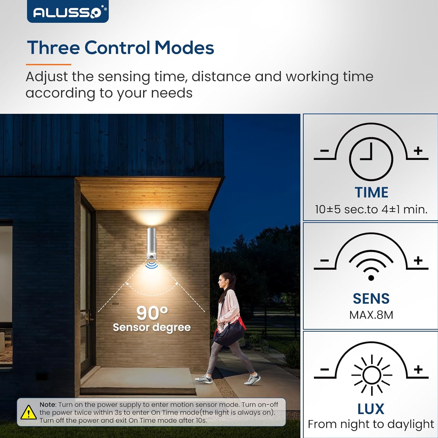 ALUSSO LED Outdoor Wall Light Motion Sensor,IP65 Stainless Steel Up Down Light Mains Powered,Warm White/Neutral White/Cool White Selectable,2x8W GU10 Included,Outside Sconce Wall Mounted for Porch