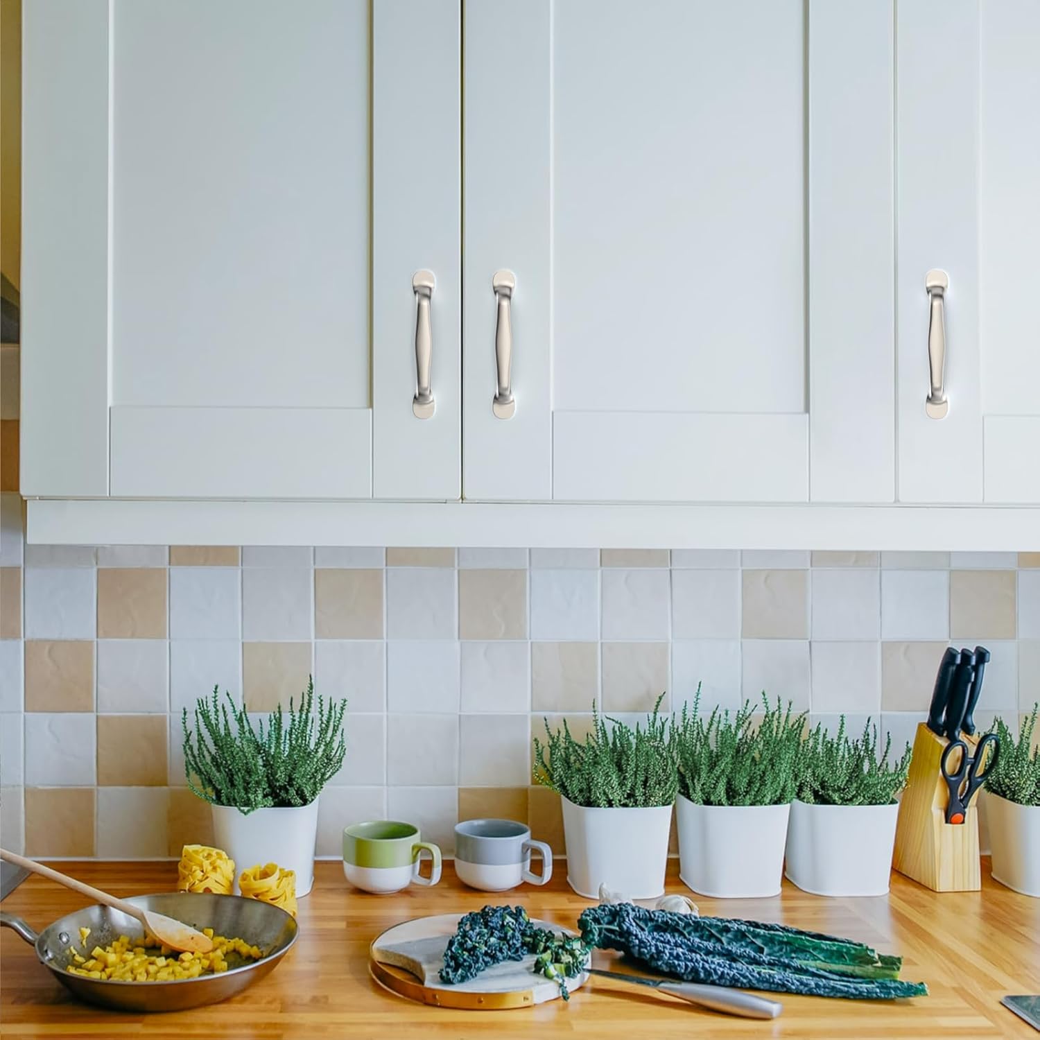 Amerdeco 10 Pack Brushed Satin Nickel Retro Cabinet Pulls 3.75 Inch(96mm) Hole Centers Kitchen Cabinet Handles Solid Zinc Alloy Cabinet Hardware Drawer Pulls AM009