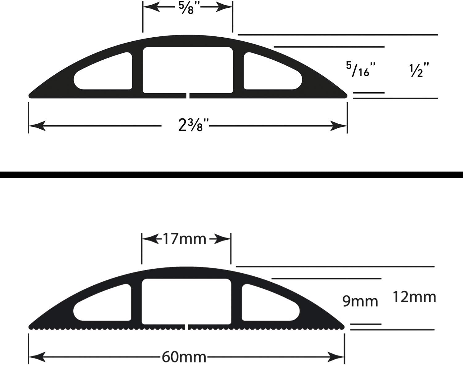 - D-Line Floor Cable Cover profile can be used to protect up to 2x 8mm diameter cables - 17mm (W) x 9mm (H) Cable Cavity.